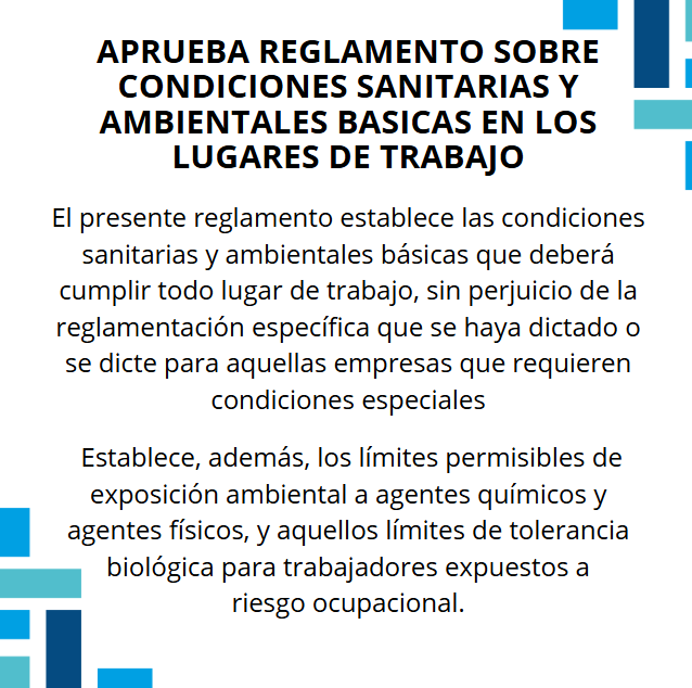 PREVENCION DE RIESGOS DECRETO SUPREMO N° 594 SOBRE CONDICIONES SANITARIAS AMBIENTALES BASICAS EN LOS LUGARES DE TRABAJO 25 de Noviembre de 2024 / Cantidad de visitas: 133695