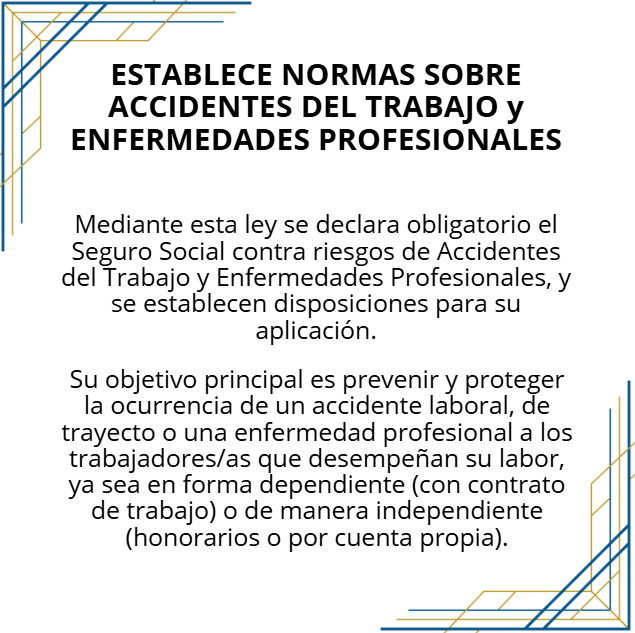 PREVENCION DE RIESGOS Ley N°16.744 QUE ESTABLECE NORMAS SOBRE ACCIDENTES DEL TRABAJO Y ENFERMEDADES PROFESIONALES 25 de Noviembre de 2024 / Cantidad de visitas: 133778