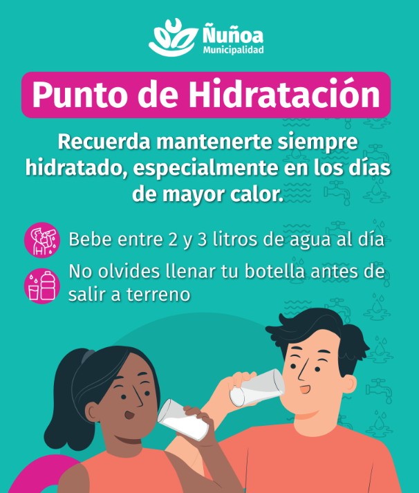 Si debes realizar funciones en terreno durante las horas con mayor exposición a Radiación UV, acércate a los puntos de hidratación en: